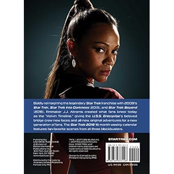 Star Trek 2018 Engagement Calendar features full-color photos from the all-new movie trilogy, Star Trek (2009), Star Trek Into Darkness, and Star Trek Beyond.Featuring more than 40 fan-favorite images from the Kelvin timeline films, this 16-month engagement-style calendar will captivate casual fans and die-hard Trekkers alike.